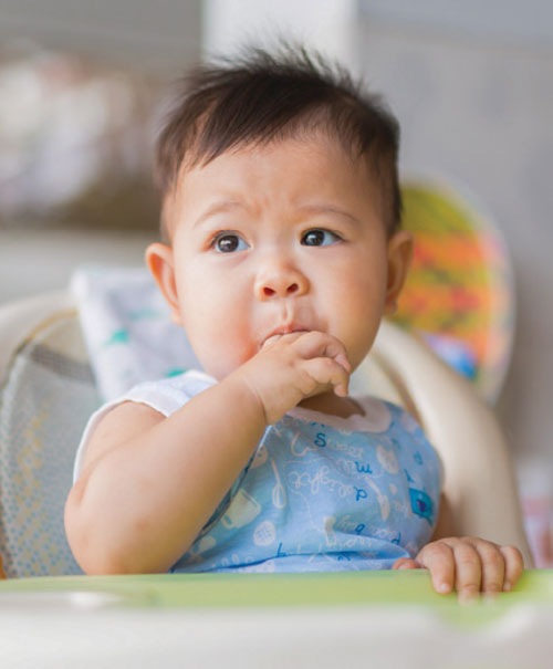 Si al bebé le gusta estar erguido para comer.